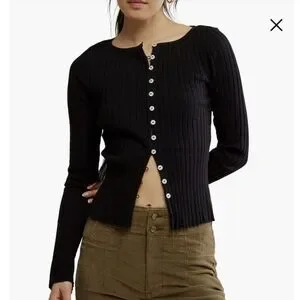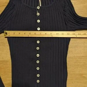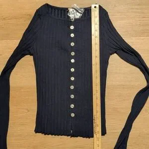 Free People NWOT Tilly Rib Long Sleeve Button Up Top in Navy sz SML & XS