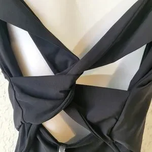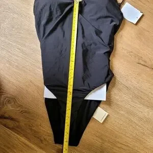 This is a stylish Malai Aslani one-piece swimsuit in size small from Anthropologie. The swimsuit features a chic black color with a cutout twist design, making it a trendy choice for the summer season. It is made of elastane and polyamide materials, ensuring a comfortable and stretchy fit. With its modern design and flattering silhouette, this swimsuit is a fashionable option for any woman looking to make a statement at the beach or pool.