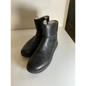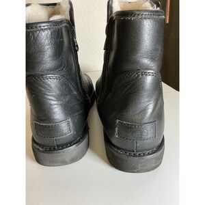 UGG Black Leather Shearling Lined Ankle Boots Side Zip Womens size 9