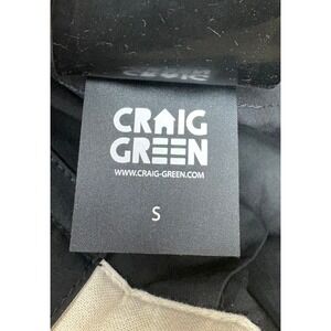 These Craig Green pants feature a clean black design with a straight-leg silhouette and subtle utilitarian detailing. Made with a structured yet lightweight feel, they offer a minimalist look with a distinctive designer edge. Easy to dress up or down, they work well for everyday wear while still reflecting Craig Green's modern, conceptual style.