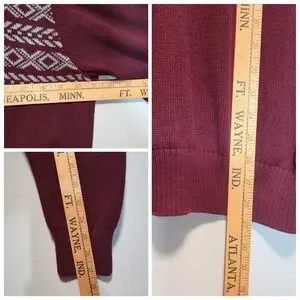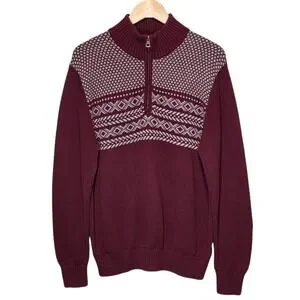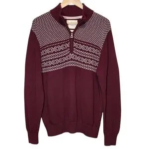 Weatherproof Vintage Holiday Sweater Mens L Burgundy Fair Isle 1/4 Zip Preppy