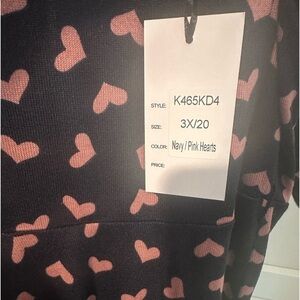 Unique Vintage Knit Navy Dress Pink Hearts Size 3x/20 Retro 50s Valentines Day