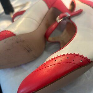 J. Adams 3" retro mary jane pumps in coral and white spectators, size 9, new
