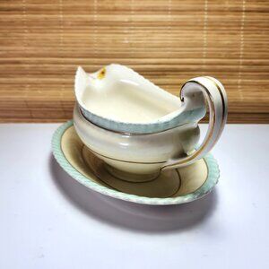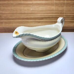 Johnson Brothers Gravy Boat Windsorware JB18 Floral Pattern Aqua Fluted Rim