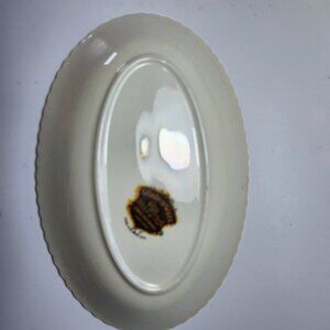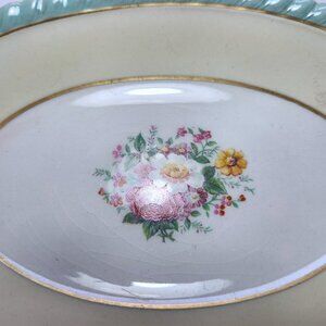 Colours are white, cream, an aqua fluted rim with a floral center spray.