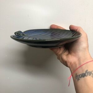 Beautiful blue jewelry or trinket dish, with an adorable little frog on one side. Excellent condition. No makers mark.