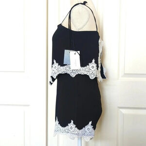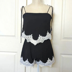 Fanco black with white lace romper self tie straps