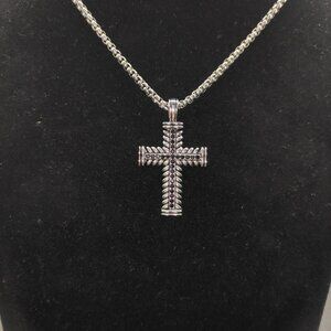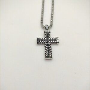 Stylish necklace with a twisted silver cross. Comes with a classic chain.