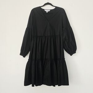 NWOT The Drop Black 100% Cotton Tiered Long Sleeves V/Neck Women's Dress Size M