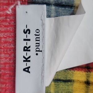 Vibrant plaid women's top featuring a mix of red, yellow, and blue hues. Perfect for adding a pop of color to your wardrobe. Good Pre-owned condition. 100% virgin wool. Tag is coming off.