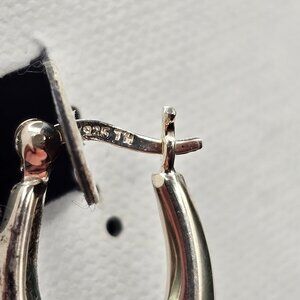 Classic Argento Vivo sterling silver puffy hoop earrings with a tapered shape and secure snap‑back closure. Smooth, modern, and easy to style. Marked 925 YH. Compact .75" size makes them perfect for everyday wear while still offering a polished, elevated look. New old stock.