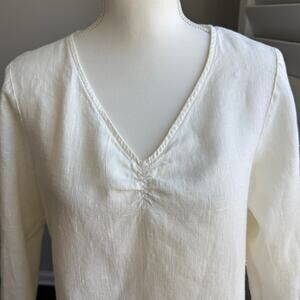 HOT COTTON Top Womens Small Cream 100% Linen Preppy Coastal Beachy Resort Wear