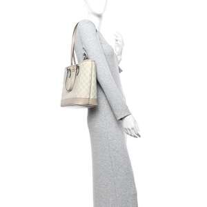 Elevate your style with the Gucci GG Supreme Textured Dollar Calfskin Small Ophidia Shoulder Tote Bag in Beige Mystic White Oatmeal. This chic and versatile accessory features a classic GG Supreme canvas pattern combined with luxurious calfskin leather for a sophisticated look. The small size makes it perfect for carrying your essentials while on the go, adding a touch of elegance to any outfit.