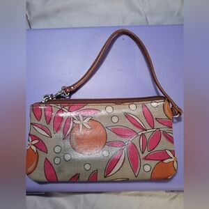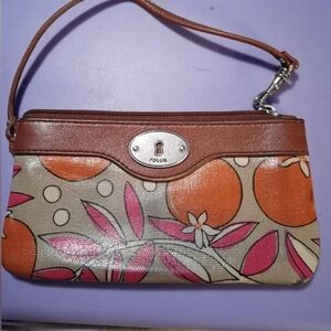 Fossil Orange and Pink Floral Wristlet