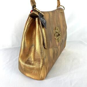 VTG 50s INGE Flap Satchel Bag Gold Chevron Leather Old Money Filigree Flower NWT