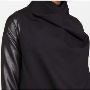 Brand new with tags SPANX jacket featuring sleek faux leather sleeves and a flattering drape-front design. This is the perfect elevated layering piece—polished enough for work, edgy enough for nights out. Beautiful closet staple!