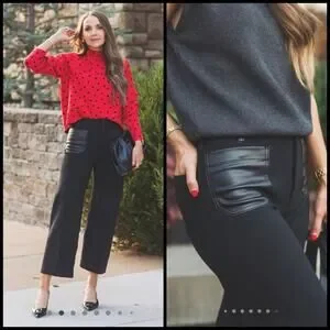 Maeve Colette Pants Womens 33T Black Cropped Wide Leg Merrick White NWT $130