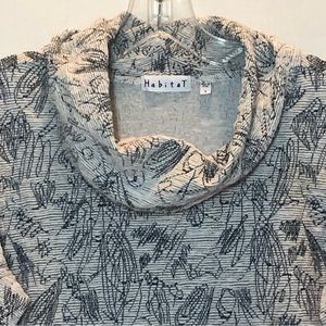 Habitat a-line tunic in ivory and very dark blue/black abstract print. Can be worn with either blue or black. Neckline is a relaxed cowl neck. Very flattering. Size small. See photos for measurements. Like new condition.