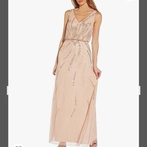 Adrianna Papell V-neck Sleeveless Beaded Blouson Gown in Blush