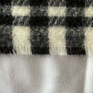 New without tags Joe Fresh women’s winter scarf in a classic black and white plaid pattern. Soft, cozy, and unworn with fringe ends. Timeless neutral style that pairs easily with coats and sweaters. Perfect for cold weather layering.