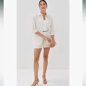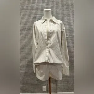 🩷 (Set) Good American Women's Stripe Poplin Weekend Button Down & Shorts 🩷