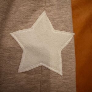 Comfortable gray joggers featuring stylish white star designs. Perfect for everyday wear. Lined in fur