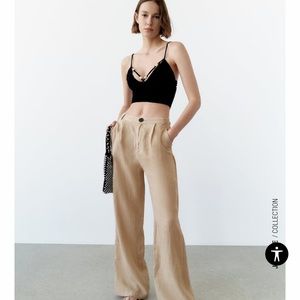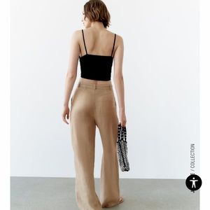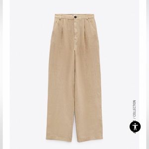Zara High-Waisted Pleated Wide Leg Linen Pants