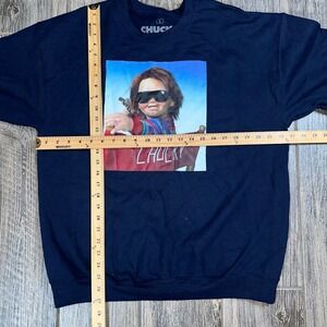 Keywords: Chucky sweatshirt, horror movie sweatshirt, killer doll, graphic sweatshirt, mens sweatshirt, universal studios, halloween, movie merchandise, horror film, collectible, movie sweatshirt, Chucky movie, retro sweatshirt