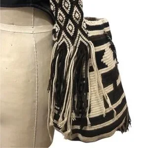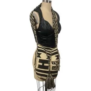 NWT SARAI WAYUU Black and Tan Patterned Woven Crossbody Bag Columbia made XL