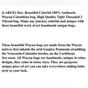 Patterned high quality Tight 2 Threaded Large Bag handmade in Colombia. Boho chic shoulder bag. Mochila