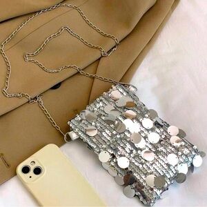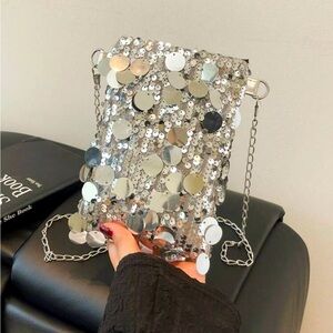 Silver Sequin Chain Strap Mini Pouch Bag NEW 🏷️