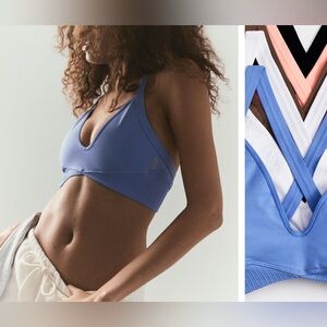 This super-plunge silhouette is a flattering sports bra essential in your workout lineup. Featuring a compressive, ribbed fabrication that fits like a second-skin for distraction-free comfort.