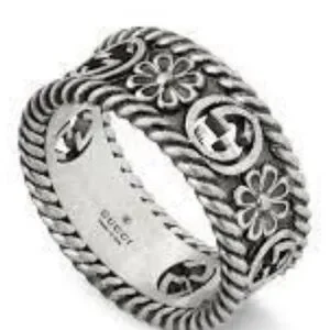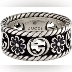 Gucci Sterling Silver GG Flower Ring with COA size 6
