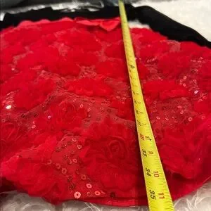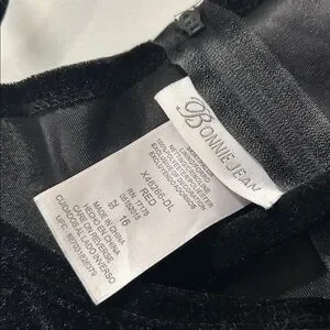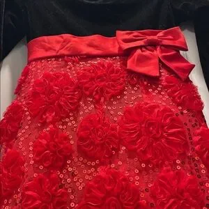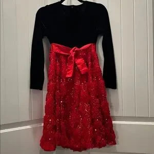 Bonnie Jean Dress Black Velvet Upper Red 3D Flowers Sequin Accents Size 16