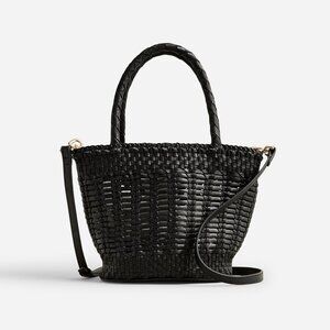 6 7/8"H x 10"W (at top) x 4"D; 4 1/2" handle drop; 22 1/2" crossbody strap (at maximum length)