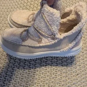 Women's Hey Dude Camden Suede Cozy Sherpa Boots With Laces, Size 8, Cream Color