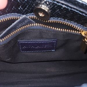 This elegant blue woven handbag is perfect for any occasion. Its stylish design and vibrant color make it a must-have accessory.