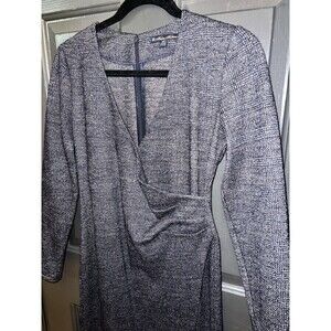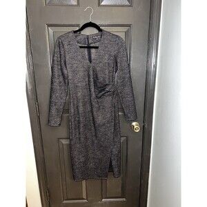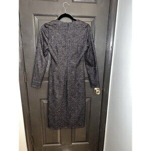 Brooks Brothers Gray Plaid Ruched Sheath Dress V-Neck Long Sleeve XS Old Money