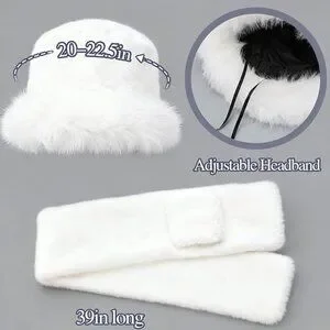 This fashion-forward fuzzy bucket hat and scarf set elevates any winter outfit