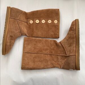 UGG Australia Women's Lo Pro Button Fold Over boots in chestnut suede Like New