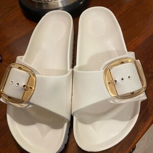 Birkenstock Off White Sandals with Gold Accents