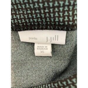 Women's J Jill XS Green Black Geometric Tunic Top Stretch Ponte 3/4 Sleeve