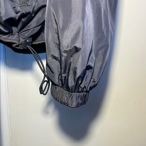 Abercrombie REVERSIBLE Navy-Blue Nylon with logos and the other side grey w/ Black Stripe with logos Jacket Men's Size Large. This versatile jacket is very warm and comfortable. The hand pockets are zipper closure for convenience and security. Drawstring hem and A& F heavy zippers. Armpit to armpit is 26 inches, shoulder seam to shoulder seam is 21 inches, shoulder seam to the end of the sleeve is 27 inches, and the total length is 32 inches. This Jacket is in excellent condition with no tears, rips, stains, etc. See photos and video for condition and your consideration.