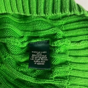 Classic and vibrant, this Lauren Ralph Lauren women's V-neck cable knit sweater in a bold kelly green color is a wardrobe essential that blends timeless style with comfort. Crafted from 100% cotton, the sweater features a flattering V-neckline, long sleeves, and the signature RL embroidered logo on the chest for a refined touch. The medium-weight knit provides cozy warmth while maintaining breathability, making it perfect for layering in cooler months or wearing on its own in transitional seasons. Its tailored fit flatters the silhouette, with ribbed hem and cuffs that hold their shape. Measurements: armpit to armpit approx. 18", sleeve length approx. 24", overall length approx. 25". A versatile piece that pairs well with jeans, trousers, or skirts for both casual and polished looks. Machine washable for easy care.