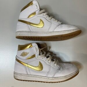 Nike Air Jordan 1 Retro High OG White Gold Sneakers Women's Shoes