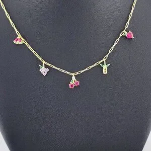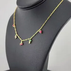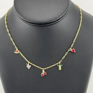Add a splash of color and charm to your look with the Fruit Fiesta Necklace — a playful yet elegant piece crafted from genuine 925 sterling silver. This delightful necklace features a collection of beautifully detailed fruit charms, including watermelon, grapes, cherries, pineapple, and apple, creating a fresh, fun, and eye-catching design. Dipped in gold.