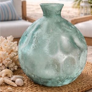 Elegant textured recycled glass vase in a rich green hue. Perfect for home decor. Frosted glass gives a sea glass effect ๐