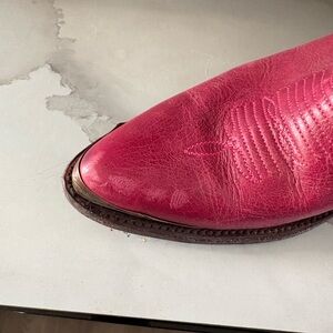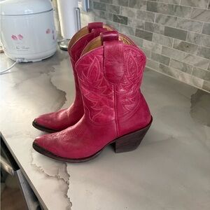 Chic pink ankle boots with western flair. Perfect for bold style statements. Retail for $ 180 . Stunning color! Like new worn twice . One small scratch on toe of one boot! See photo size 9.5
