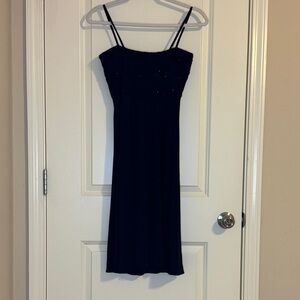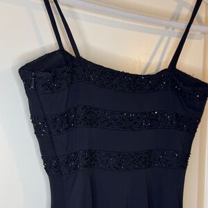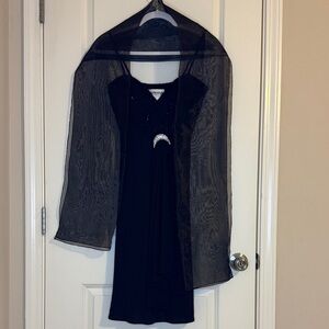 This elegant black dress features a stylish sheer overlay, perfect for any special occasion. Its timeless design ensures you stand out with sophistication.