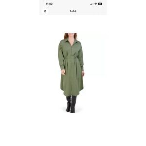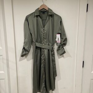 NWT French Connection Olive Green Shirt Dress Medium M Midi Belted Satin Career